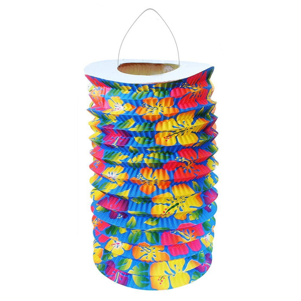 Zložena svetilka v havajskem slogu je popoln dodatek za vsako zabavo! Svetilka s premerom 15 cm je izdelana iz papirja in okrašena s pisanimi cvetovi. Na dnu svetilke je ročaj za namestitev čajne sveče. Havajska svetilka bo zagotovo ustvarila odlično vzdušje na vaši zabavi!
