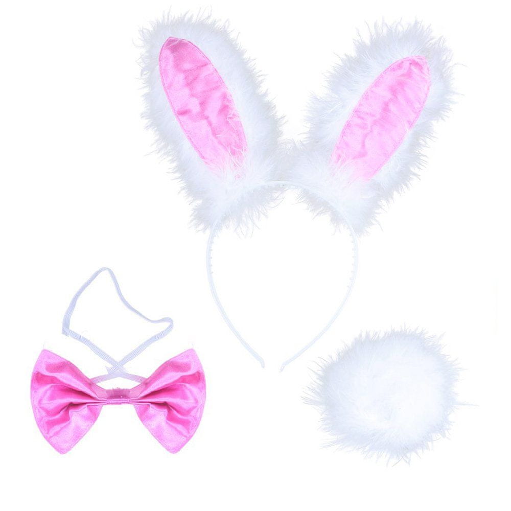 Ekskluzivni pustni set za vse zajčice! Komplet vključuje zajčja ušesa na naglavnem traku, rožnatega metuljčka in pripet repek. Teh kul dodatkov za zabavo ne smete zamuditi!