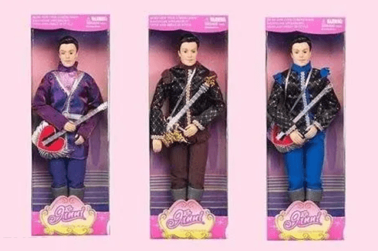 Punčka Ken s kitaro, oblečena v modna oblačila. Punčka je visoka 29 cm.