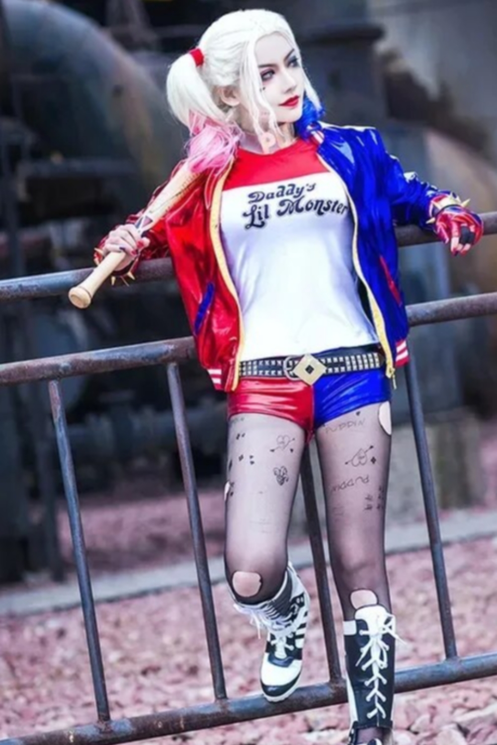 Harley Quinn je psihiatrinja, ki je delala v azilu Arkham, ustanovi za duševno bolne kriminalce, kjer je spoznala Jokerja , enega najbolj razvpitih Batmanovih nasprotnikov . Sčasoma pade v obsesivno razmerje z Jokerjem in postane njegova partnerica v kriminalnih dejavnostih. ➡️ Preobleka je narejena iz