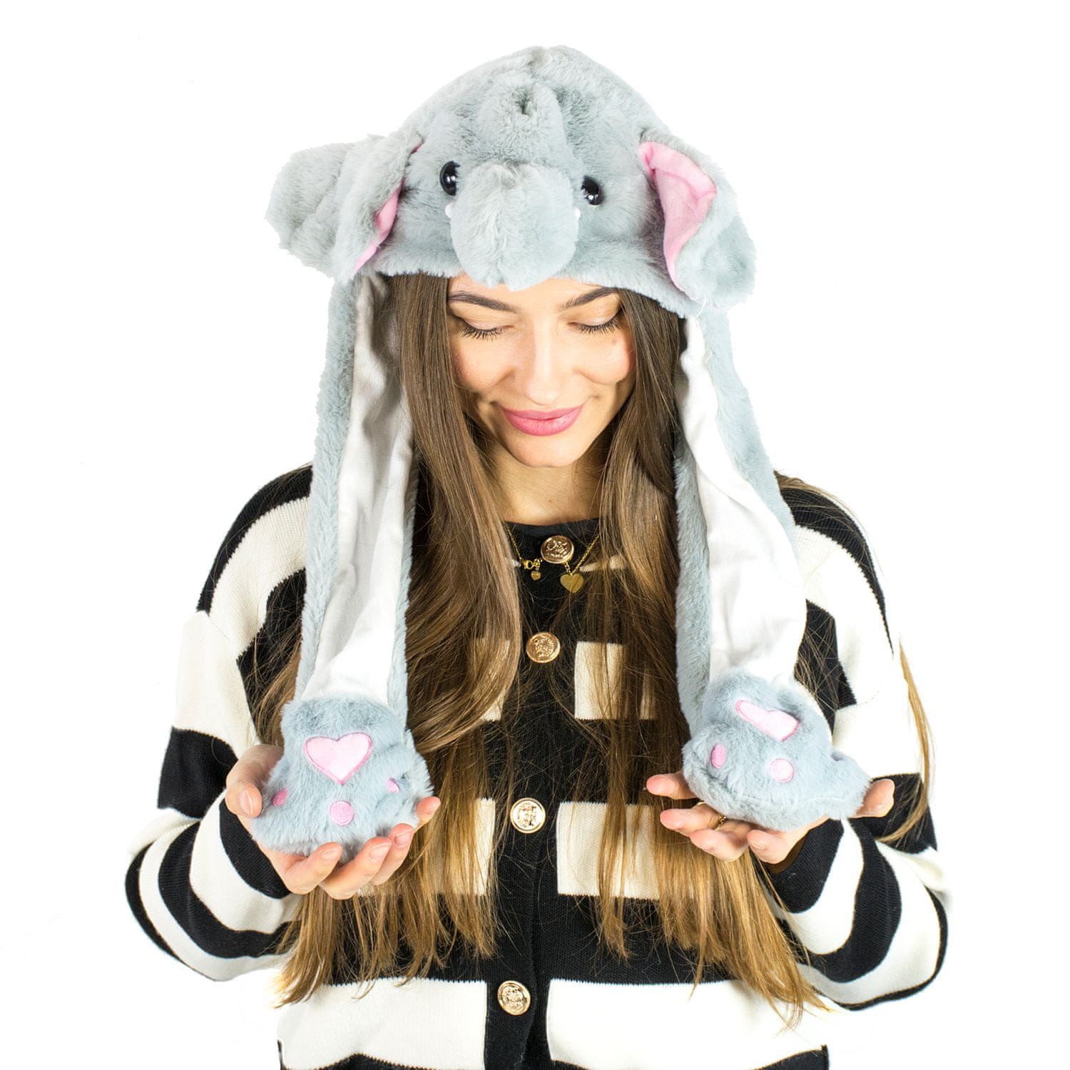 shumee Kapa z gibljivimi ušesi, siva, srebrna, slon, mahajoča, zimske flis šape