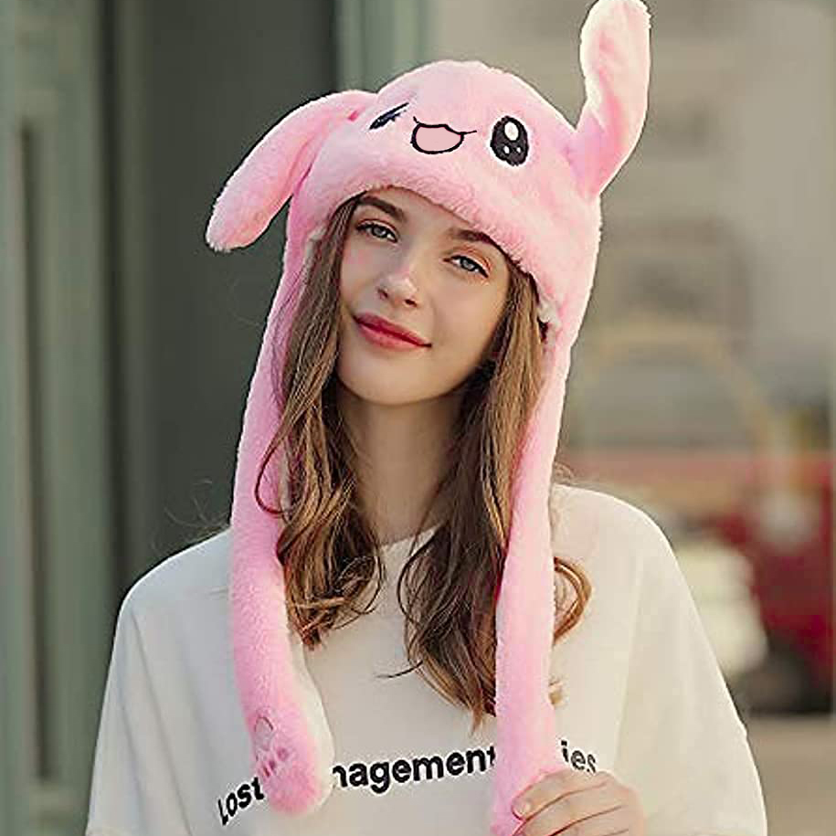 shumee KLOBUK Z PREMIČNIMI UŠESI, ZAJČJI, ROZA