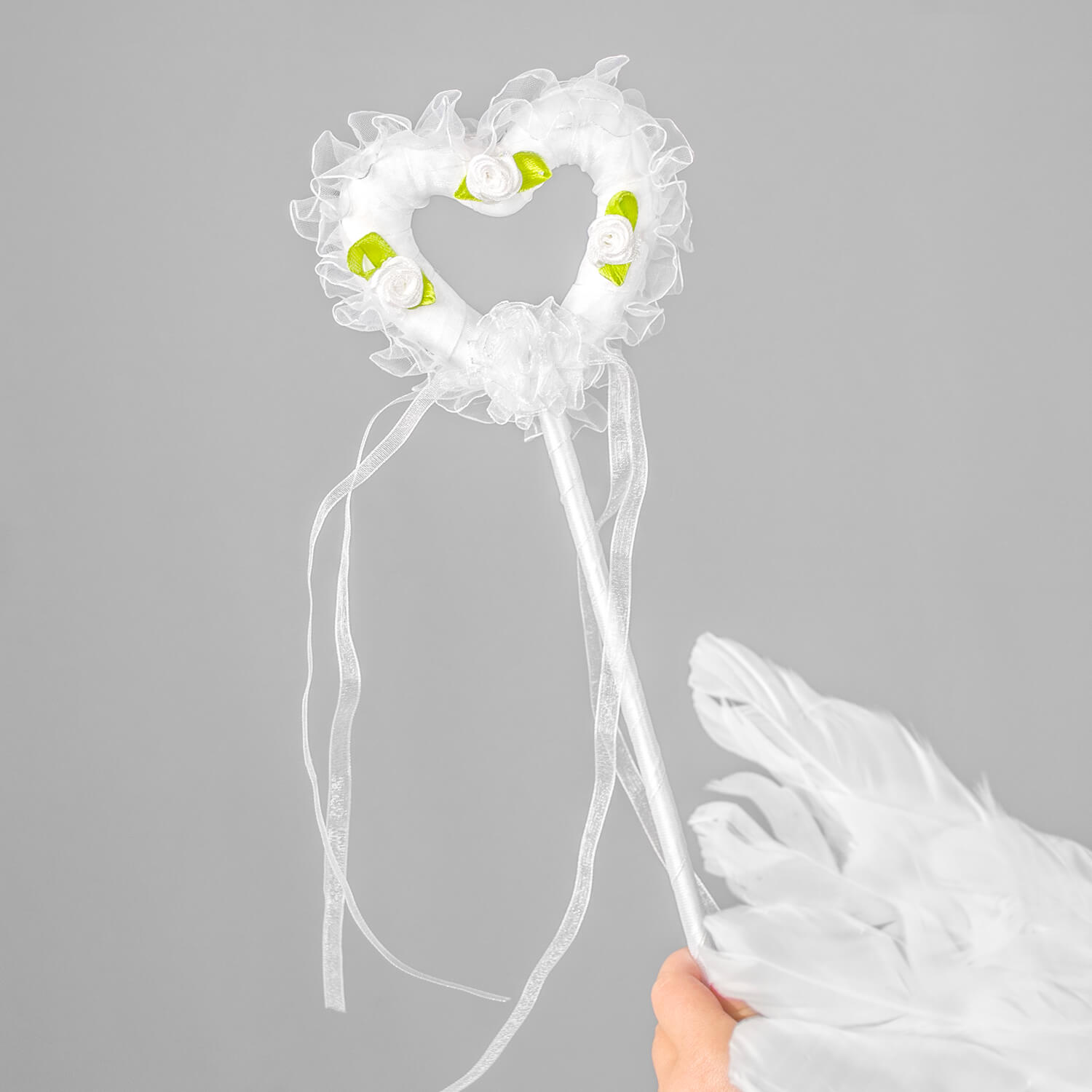 PALICA ❤️ Čudovita bela palica s srčkom. Okrašena z belimi cvetovi vrtnice. Dopolnjuje celoten kostum angela.