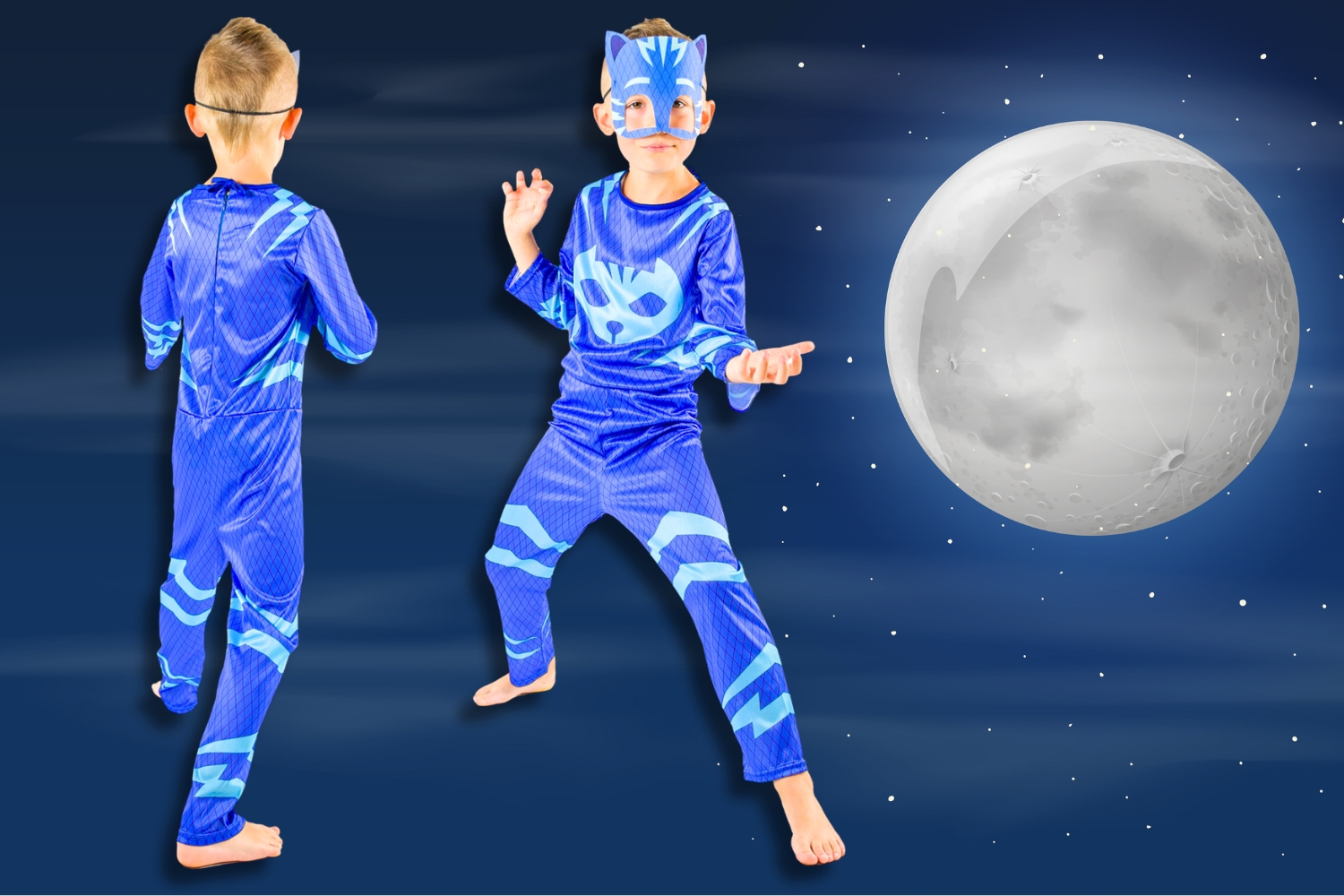 Catboy iz PJ Masks odlična izbira. ⚡ Poglejte, kako naša obleka izgleda v živo na našem modelu Kubi!