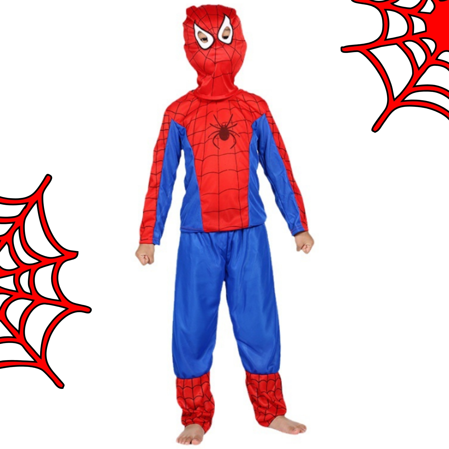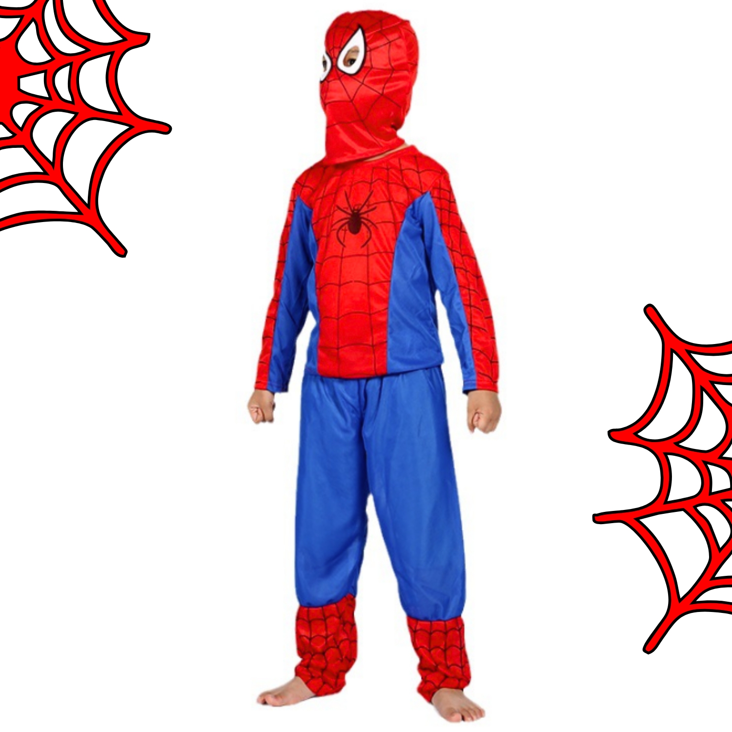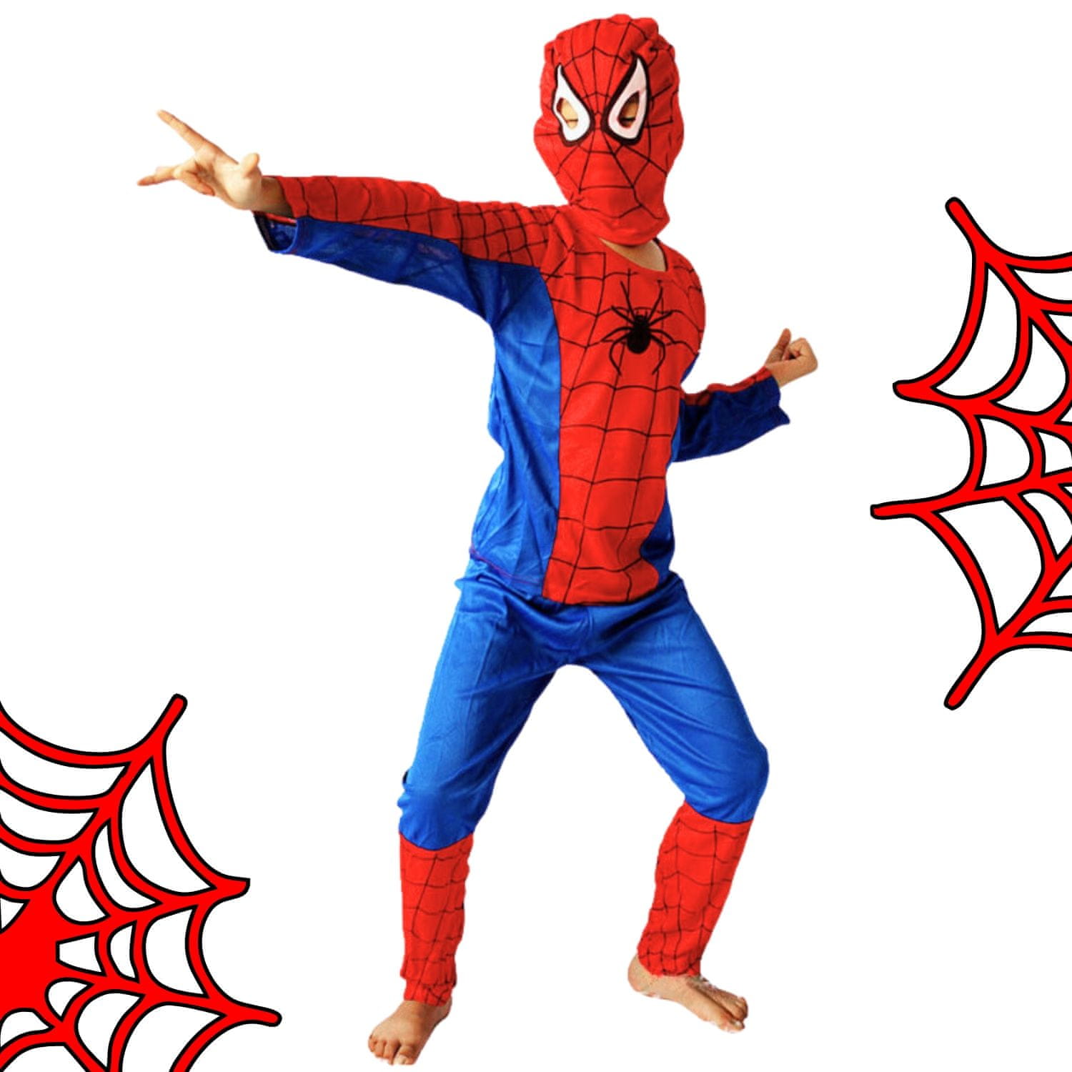 ✴️ MAJICA – Rdeča na vrhu in modra na rokavih in straneh, z značilnim potiskom pajkove mreže na rdečem ozadju. Na sredini majice, na prsih, je črn pajek, simbol superjunaka, ki je osrednja točka oblačila. Majica je narejena iz mehkega, raztegljivega materiala, ki zagotavlja udobje in ne omejuje gibanja vašega otroka, tako da lahko prosto teče, pleza in skače.