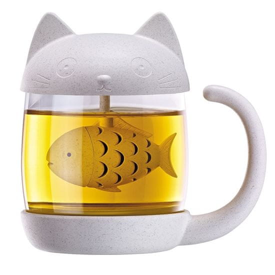 Mačja skodelica z vgrajenim infuzerjem za čaj, velika, s pokrovom Celoten opis