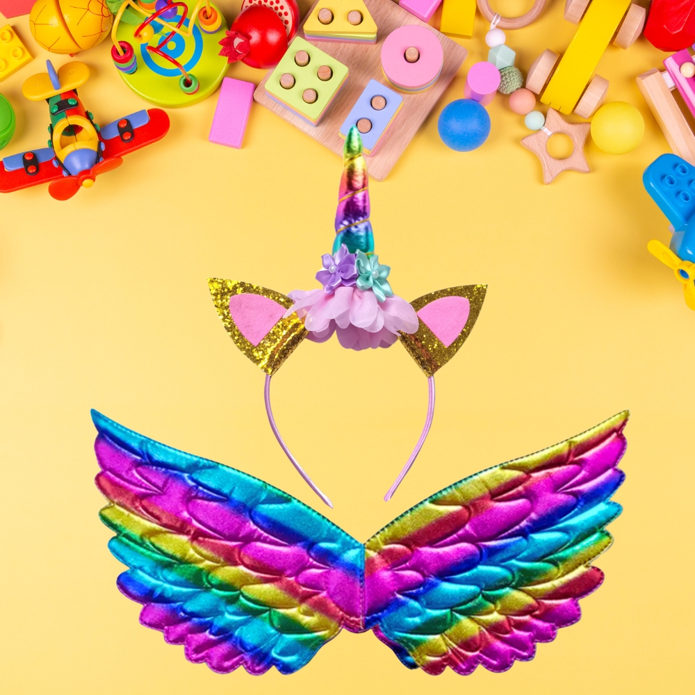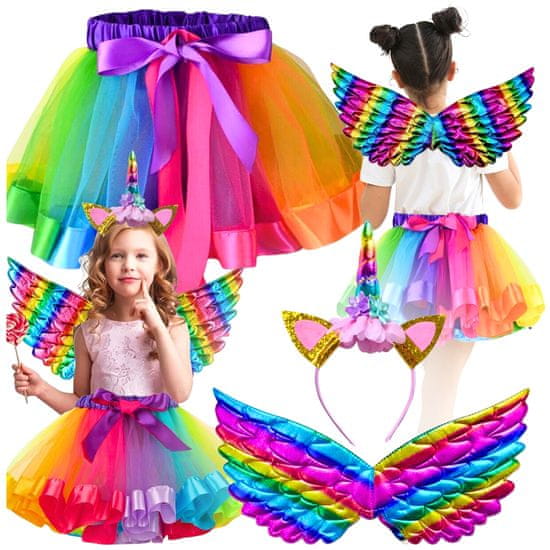 shumee Mavrični kostum samoroga, obleka, krilo, krila, naglavni trak