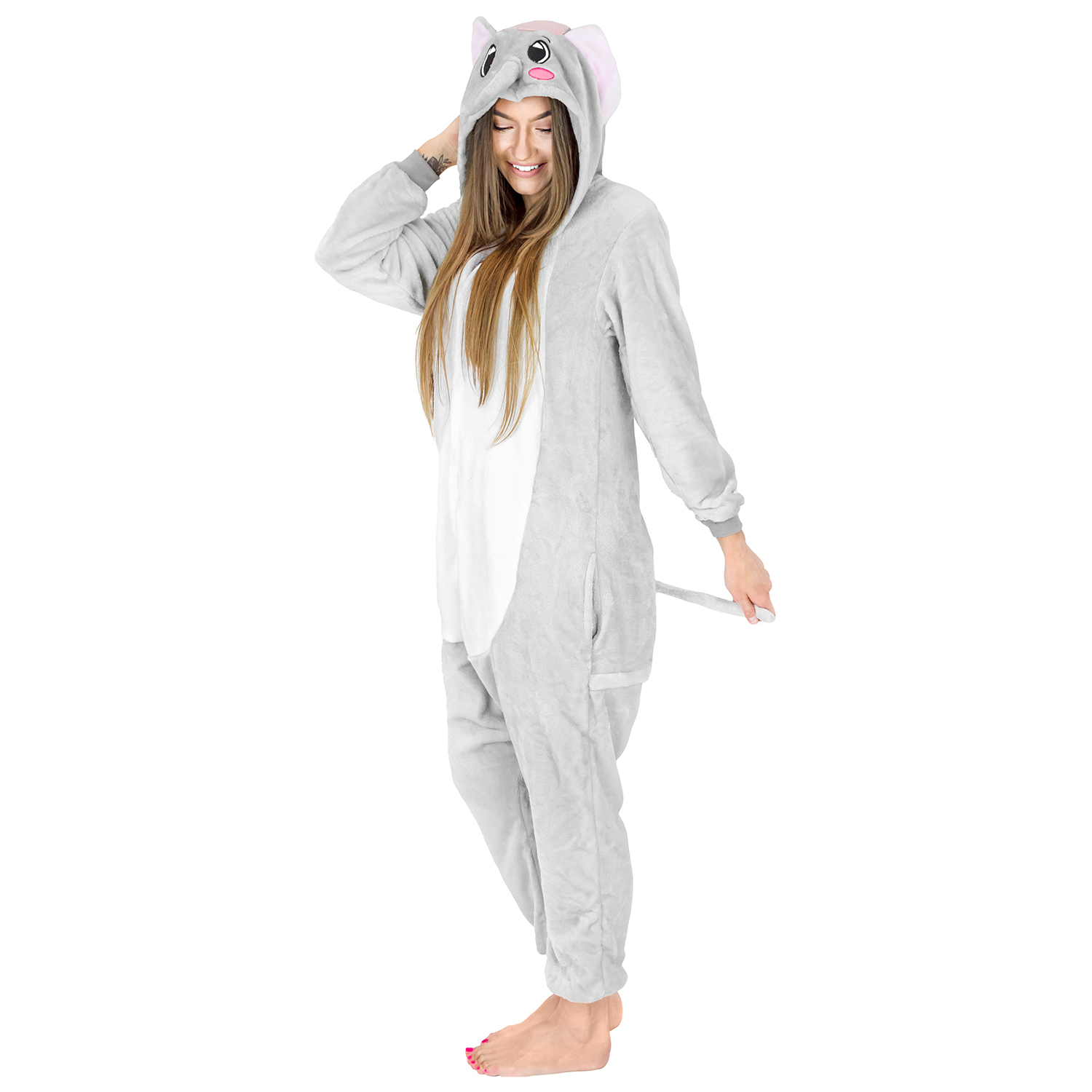 shumee Moška pižama s slonom, smešna kigurumi pižama za odrasle, topla XL, kostum slona, siva - M