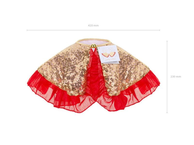 Ovratnica z zlatimi bleščicami in rdečim naborkom.