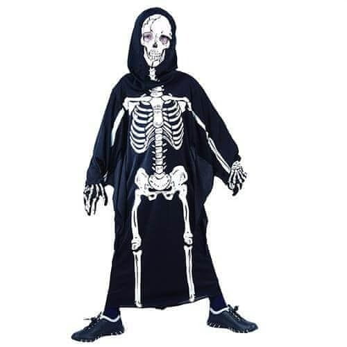 Je otroški pustni kostum, ki je primeren za fante in dekleta. Kostum okostnjak lahko uporabite tako v času pusta, kot tudi za noč čarovnic. Kostum vsebuje enodelno dolgo obleko, ki sega do tal in ima prav tako dolge rokave. Obleka je črne barve in ima spredaj narisanega belega okostnjaka. Poleg obleke spada zraven tudi kapuca in maska. Obleka je na voljo v 3 različnih velikostih in sicer S (višina 110–120 cm), M (višina 120–130 cm) in L (višina 130–140 cm).