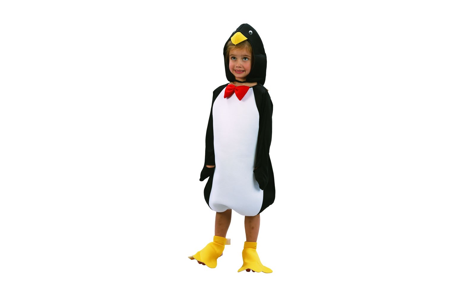 Pustni kostum pingvin za najmlajše vsebuje obleko, pokrivalo ter pokrivali za stopala. Velikost 80–92 cm ter 92–104 cm. Celoten opis