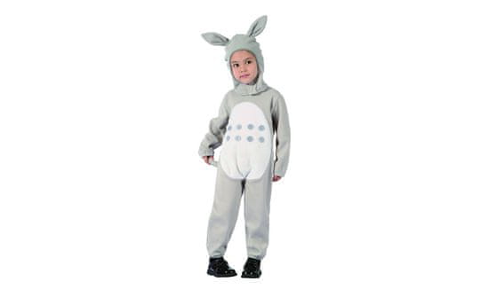 Pustni kostum zajček za najmlajše vsebuje obleko in kapuco (čevlji in nogavice niso priloženi). Mali sivi zajček, ki mu manjka samo še korenje med zobki. Velikost 80–92 cm ter 92–104 cm. Sestava: 100% POLIESTER