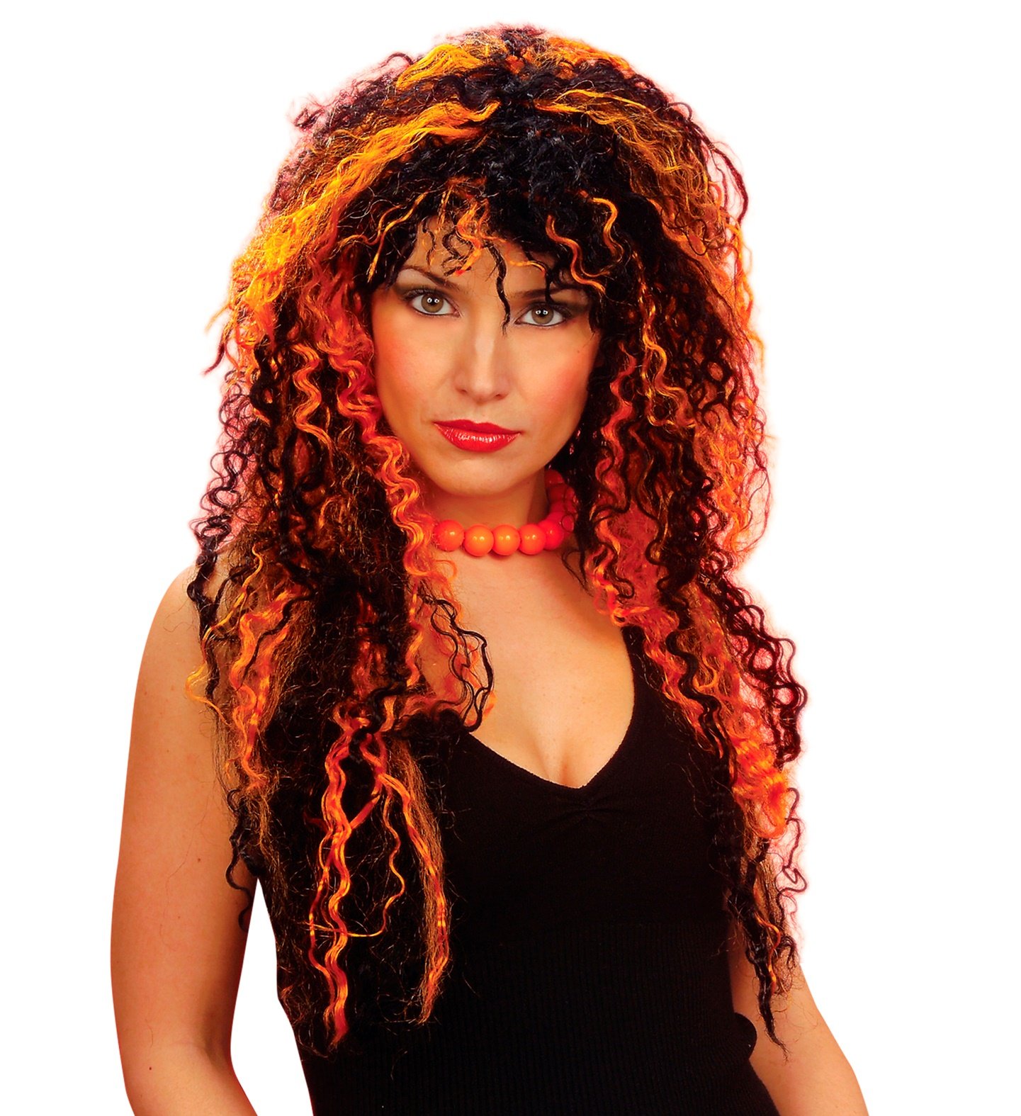 Ženska oranžna skodrana lasulja za vampirko. Lasulja z različnimi barvami pramenov sega vse do komolcev. Velikost je univerzalna. Celoten opis