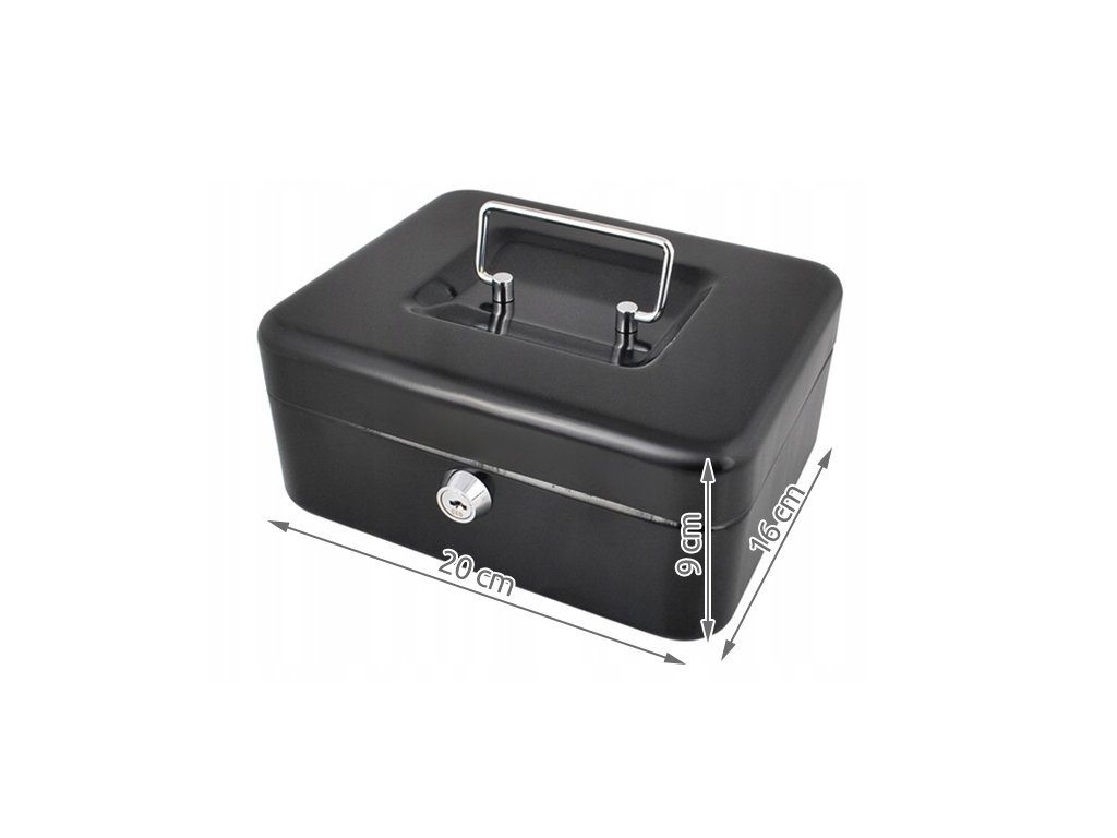 Kovinska ročna blagajna s ključavnico in plastičnim vložkom za kovance. Celoten opis