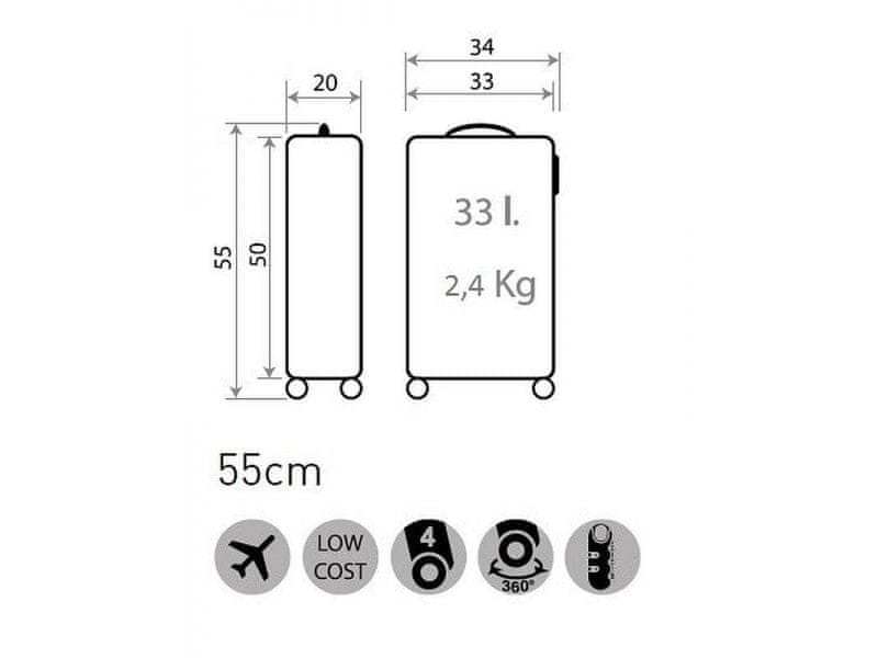 Z notranjo prostornino 34 litrov ponuja veliko prostora za vse najnujnejše stvari, ki jih vaši otroci potrebujejo na poti. Kovček ima vgrajeno številčno ključavnico za večjo varnost, v notranjosti pa žep z zadrgo za pregledno organizacijo.