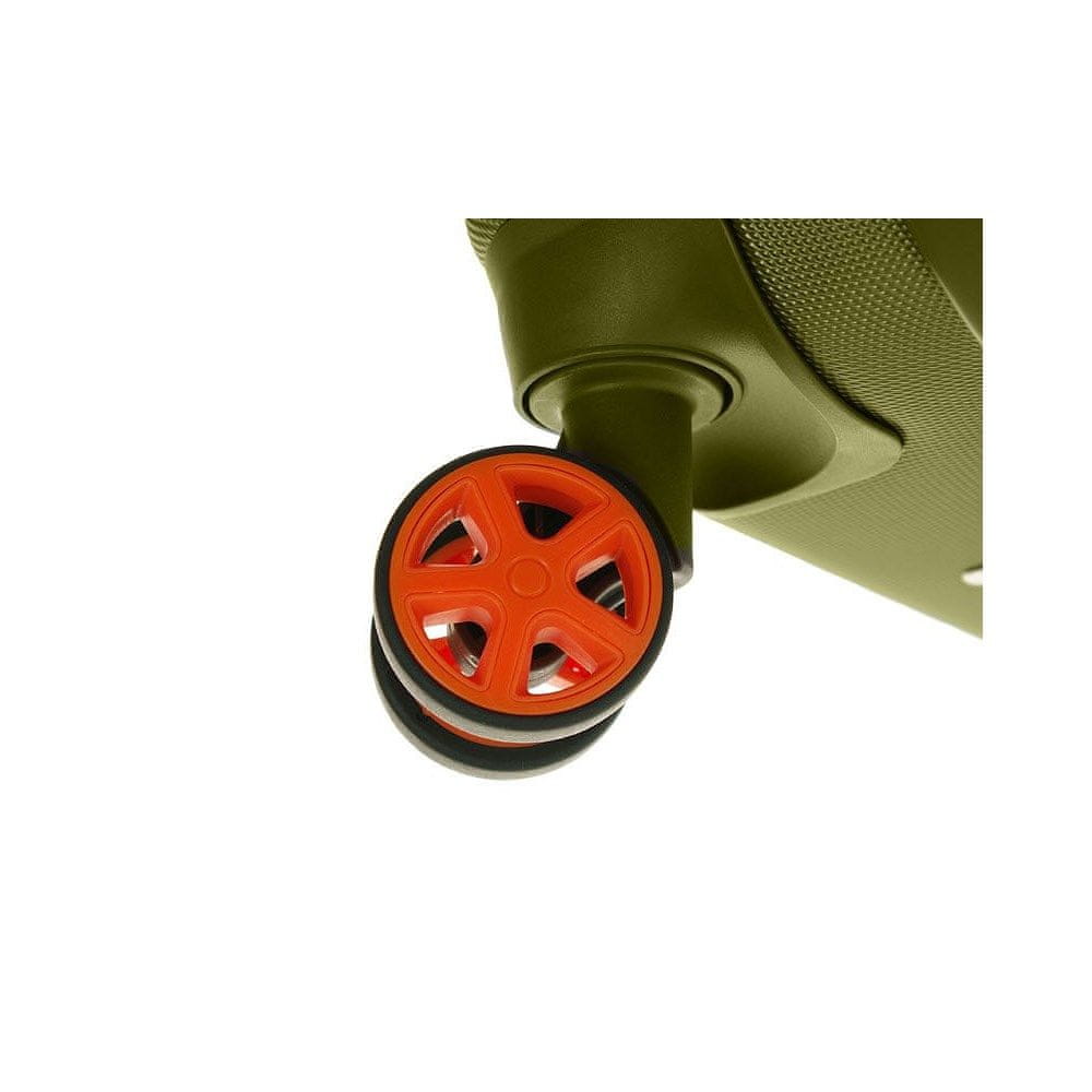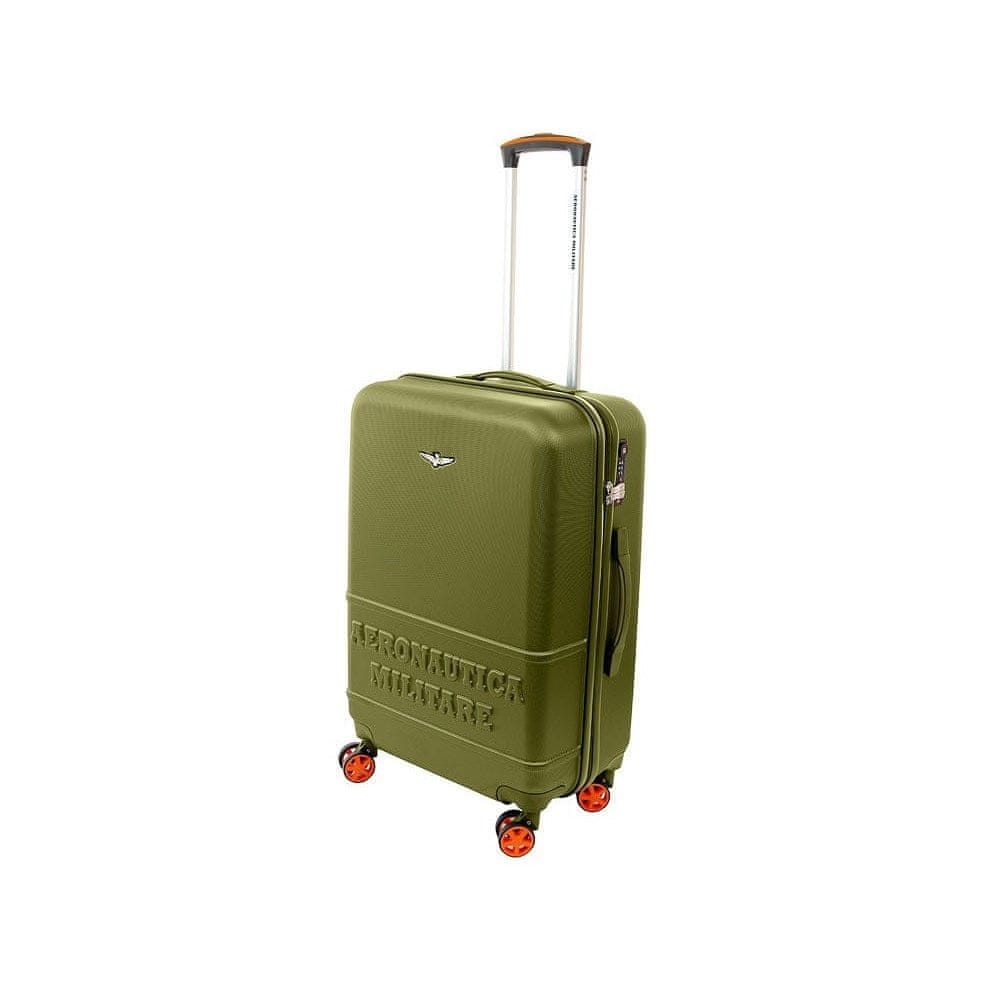 SREDNJI KOVČEK AERONAUTICA MILITARE, 4 KOLESA, 67 CM FORCE AM-220 60 VE GREEN VERDE. Ta srednje velik kovček italijanske blagovne znamke Aeronautica Militare je del kolekcije Force. Njegovo zelo trpežno ohišje iz ABS plastike zagotavlja odlično zaščito vaših stvari pred poškodbami med potovanjem. Priročni ročaji na strani in na vrhu omogočajo enostavno namestitev v prtljažnik avtomobila ali odstranitev iz letališkega transporterja. Štiri dvojna, aksialno vrtljiva kolesa zagotavljajo udobno gibanje. Teleskopski, lahek in nastavljiv okvir olajša manevriranje. Kombinacijska ključavnica, ki je skladna s TSA, ščiti vaše stvari. Notranjost je elegantno podložena, en del je opremljen s trakovi za prtljago, drugi del pa je razdeljen s tkaninsko pregrado z dodatnimi žepi, ki pomagajo ohranjati red in organizacijo v kovčku. Ta kovček odlikujeta edinstven videz in kakovost izdelave.