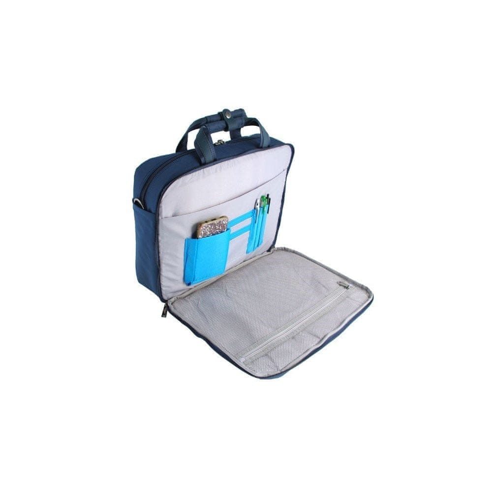 Ta 15-palčna torba za prenosnik iz kolekcije Airspace znamke Aeronautica Militare je izdelana iz visokokakovostne gumirane tehnične tkanine. Zasnovana je bila za aktivne posameznike, ki cenijo kakovost, udobje in zanesljivo organizacijo. Glavni predal se zapira z visokokakovostno dvojno zadrgo z velikim, praktičnim kovinskim ročajem in ga je mogoče zakleniti s ključavnico. Oblazinjen predal za prenosnik ščiti naprave do 15 palcev pred udarci. Vodoravni sprednji žep, skrit pod okrasnim zadrgo, se zapira z velikim vodoravnim žepom na hrbtni strani. Elegantna podloga v notranjosti. Za nošenje se uporablja udoben, nastavljiv in snemljiv naramni trak. Torbo lahko nosite tudi ročno z dvema udobnima ročajema, ki sta dodatno pritrjena s trakom. Pritrditev na ogrodje vozička olajša potovanje, saj omogoča varno pritrditev torbe. Elegantni kovinski elementi in našitek z logotipom Aeronautica Militare Pilota prispevajo k izvirnosti izdelka. Torba je zasnovana s praktično in funkcionalno zasnovo, je lahka in skrbno izdelana.