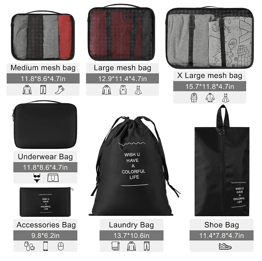 Vsak organizator je opremljen z dvojno zadrgo, okroglimi kljukicami, mrežastimi stenami za boljše zračenje in udobnimi tkaninami za enostavno prenašanje. Ta potovalna zbirka ni le praktična na potovanjih, ampak tudi učinkovita za organizacijo v omari in jo je mogoče uporabljati tudi posamično. Idealna izbira za vse, ki iščejo učinkovit način za ohranjanje svojih stvari v redu.