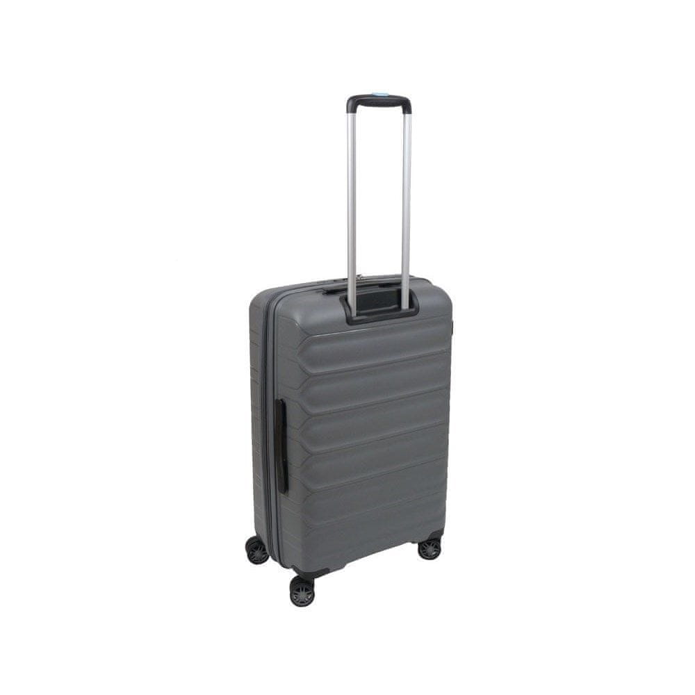 Srednje velik kovček italijanske znamke Dielle iz kolekcije 100. Ohišje je izdelano iz trpežnega in dolgotrajnega polipropilena. Priročni ročaji na strani in na vrhu omogočajo enostavno namestitev v prtljažnik avtomobila ali odstranitev iz letališkega transporterja. Štiri dvojna, aksialno vrtljiva kolesa zagotavljajo udobno gibanje. Teleskopski, lahek in nastavljiv okvir olajša manevriranje. Kombinacijska ključavnica, ki je skladna s TSA, ščiti vsebino. Dodatna prednost je možnost razširitve kovčka za približno 5 centimetrov s posebno zadrgo. Notranjost je elegantno podložena, en del je opremljen s trakovi za pritrditev prtljage, drugi del pa je razdeljen s tkaninsko pregrado z dodatnimi žepi, ki pomagajo ohranjati red in organizacijo v kovčku. Ta kovček odlikujeta edinstven videz in kakovost izdelave.