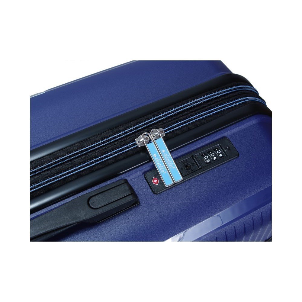 Srednje velik kovček italijanske znamke Dielle iz kolekcije 180. Ohišje je izdelano iz polipropilena. Priročni ročaji na strani in na vrhu omogočajo enostavno namestitev v prtljažnik avtomobila ali odstranitev iz letališkega transporterja. Štiri dvojna, aksialno vrtljiva kolesa zagotavljajo udobno gibanje. Teleskopski, nastavljiv okvir ščiti vsebino s kombinacijsko ključavnico, ki je skladna s TSA. Dodatna prednost je možnost razširitve kovčka za približno 5 centimetrov z uporabo posebne zadrge. Notranjost je elegantno podložena, en del je opremljen s trakovi za pritrditev prtljage, drugi del pa je razdeljen s tkaninsko pregrado z dodatnimi žepi. Ta kovček odlikujeta edinstven videz in kakovost izdelave.