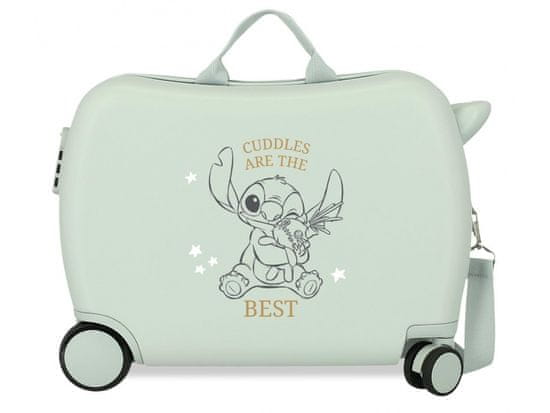 Kovček je opremljen s številčno ključavnico za zaščito vsebine med potovanjem. Funkcija vozička ponuja stabilna kolesa in oblikovanje, ki zagotavlja, da otrok udobno sedi. Subtilen motiv Stitch z napisom Cuddles Are The Best daje kovčku edinstven videz. ✨