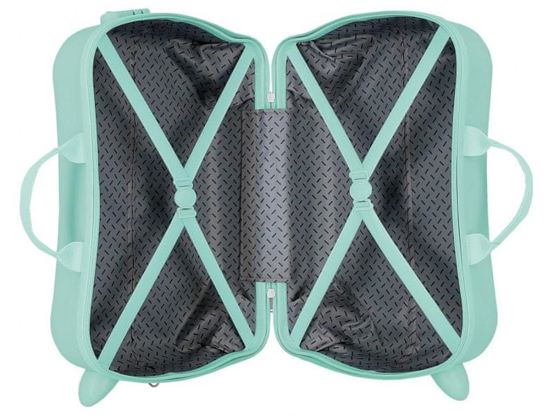 Kovček je opremljen s štirimi vrtljivimi kolesi za 360°, ki zagotavljajo enostavno manevriranje tudi v tesnih prostorih. Notranjost kovčka je organizirana zaradi tekstilne podloge, ki vključuje žep z zadrgo za majhne predmete. Zaradi kompaktnih dimenzij 50 × 20 × 38 cm je idealen za ročno prtljago in je primeren za otroke do 30 kg.