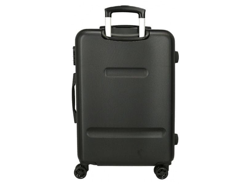 Komplet kovčkov Mickey Mouse Mickey Studs je idealna izbira za potnike, ki iščejo elegantno, trpežno in praktično prtljago v enotnem dizajnu. Elegantna črna zasnova s subtilnim motivom miške Mickey Mouse je videti brezčasna in je primerna za družinske počitnice in samostojna potovanja.