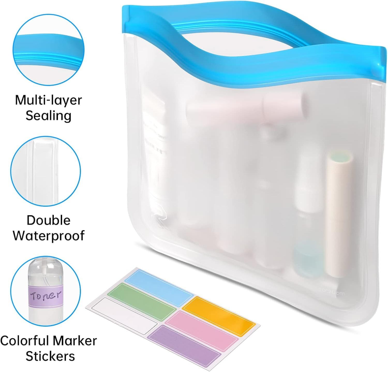 •     Dvojno zatesnjenoTa toaletna torbica ima dvojne vodoodporne robove in večplastno tesnilo na vrhu, ki preprečuje iztekanje tekočin in predmetov. Lahko se ponovno zapre za večkratno uporabo. Uživajte v brezskrbnem potovanju.