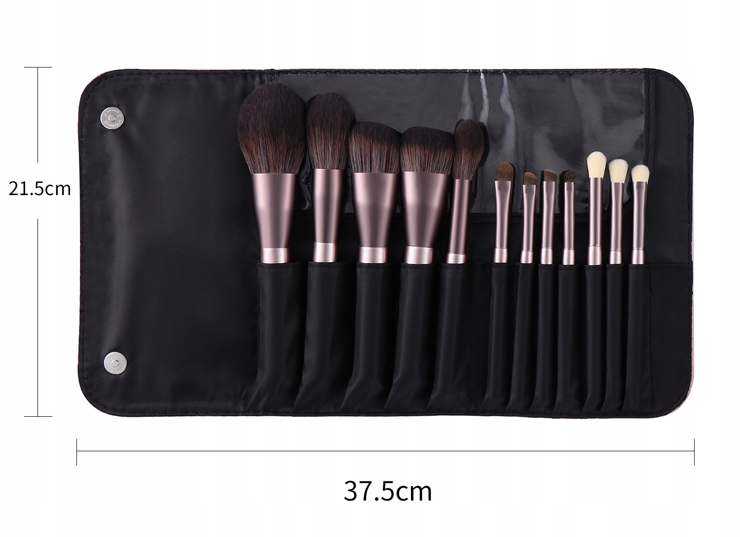 Torbica je opremljena z 12 žepi različnih širin. Idealna za shranjevanje čopičev za ličenje, maskare, črtala za oči ali črtala za oči. Ima zaščitni poklopec in zelo priročno magnetno zapiranje.