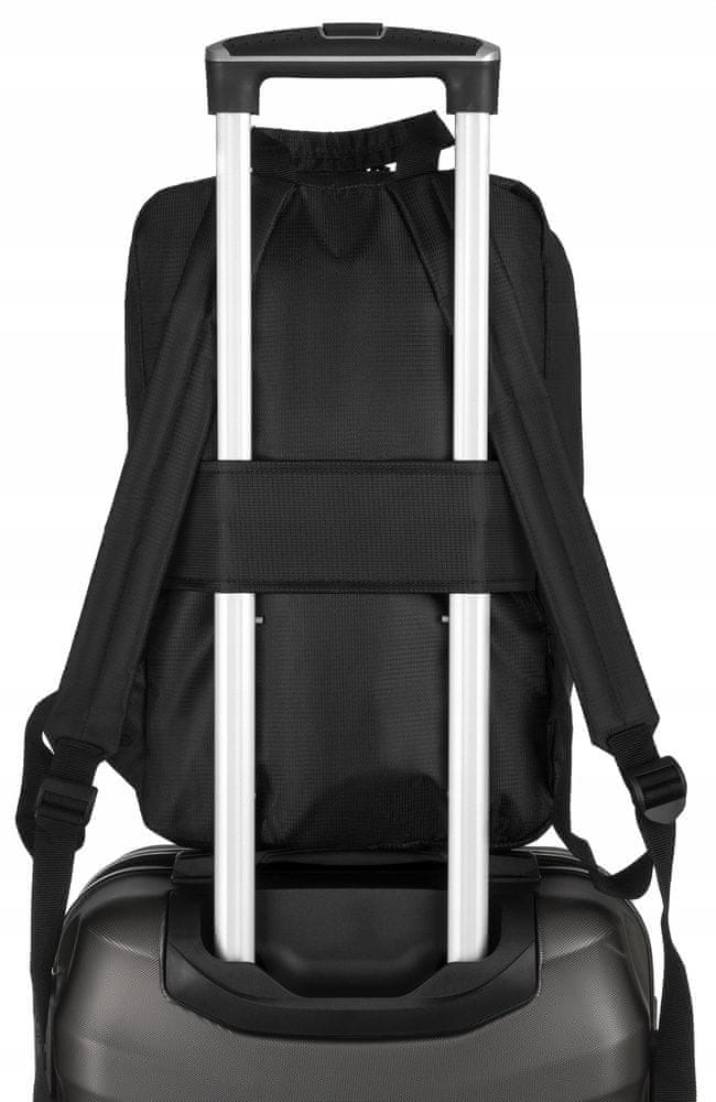 Praktična rešitev, ki bo vsako potovanje naredila veliko bolj prijetno! Na hrbtni strani nahrbtnika je ročaj, ki ga lahko pritrdite na kovček.