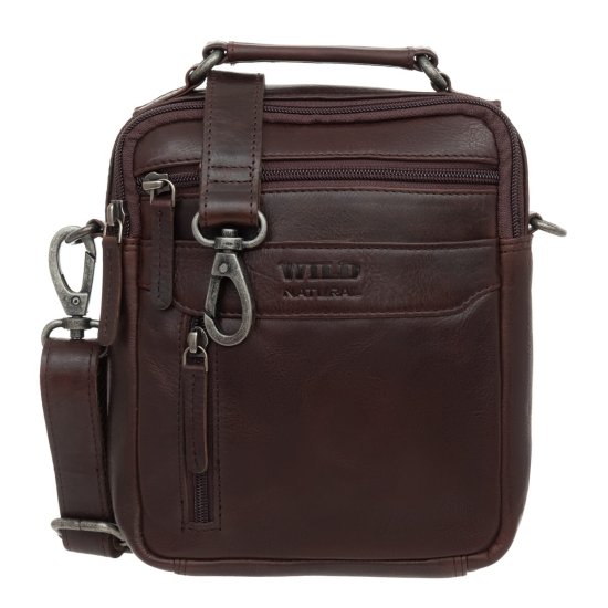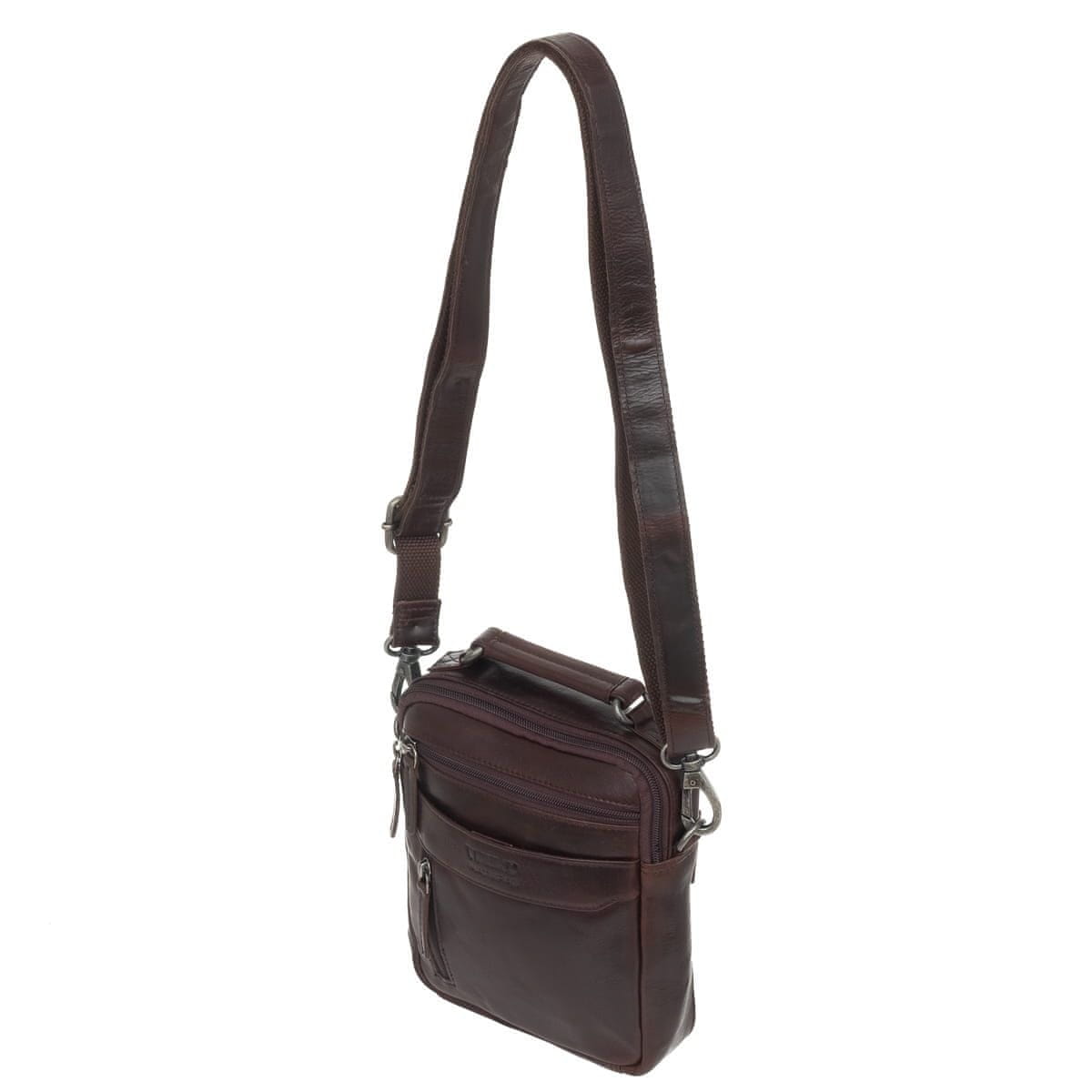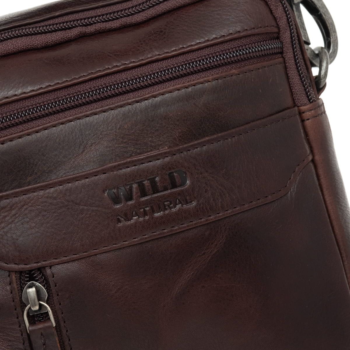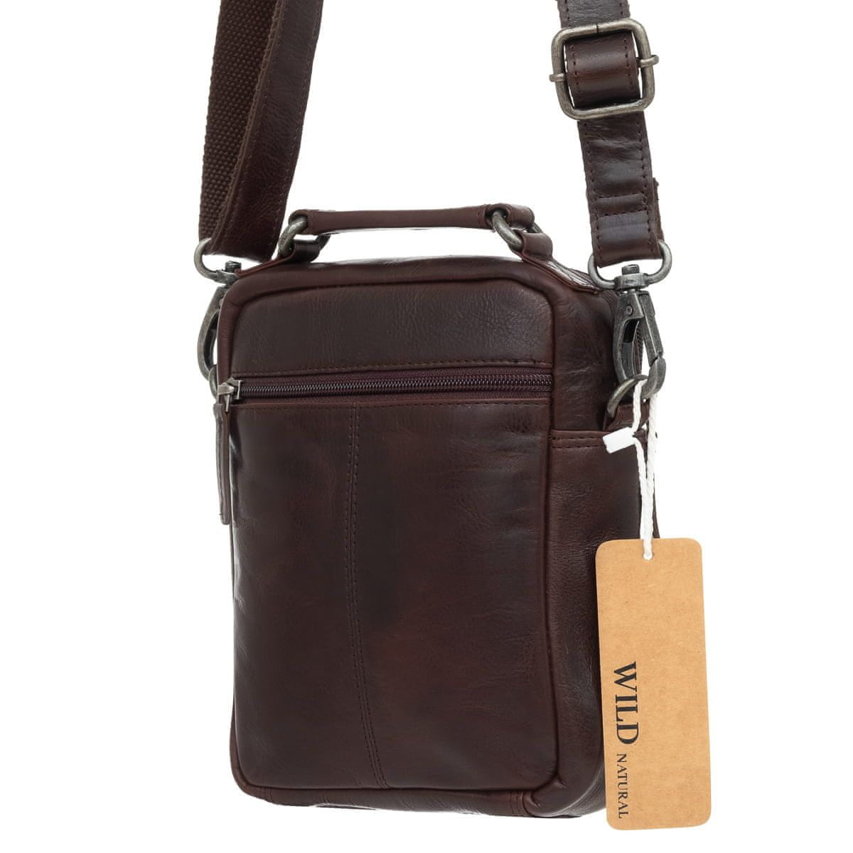 Srednja moška usnjena torba divje naravne rjave barve Celoten opis