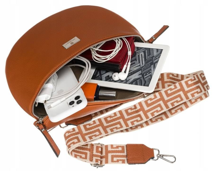 Torbica z res dolgim trakom, ki je nastavljiv in snemljiv – ta rešitev vam omogoča nošenje torbo ne le čez ramo, na boku, ampak tudi z ustvarjanjem majhnega nahrbtnika, ki se nosi čez eno ramo.