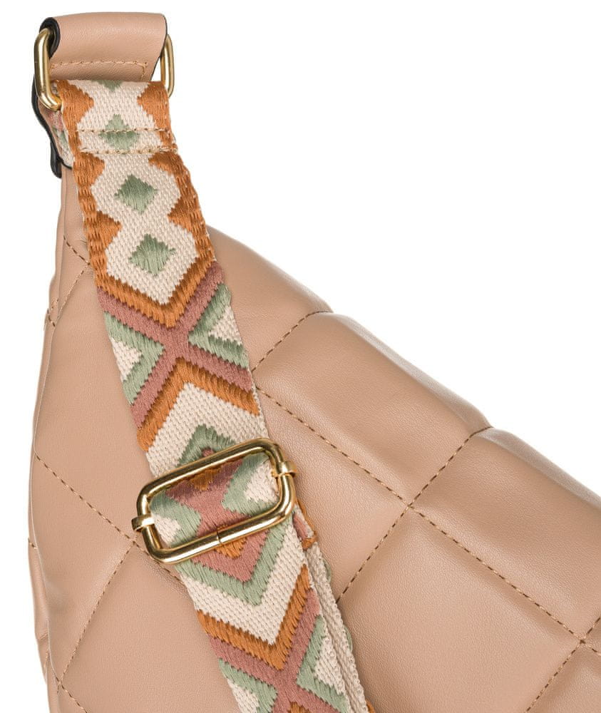 • Opremljena z dolgim trakom | Obešena na traku, okrašenem z geometrijskim vzorcem, z možnostjo nastavitve dolžine.