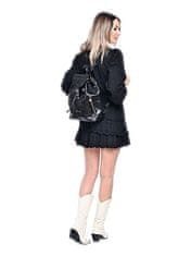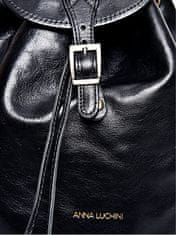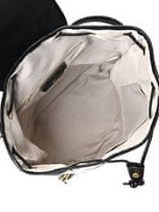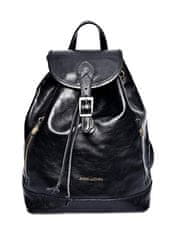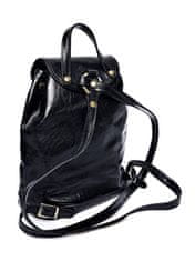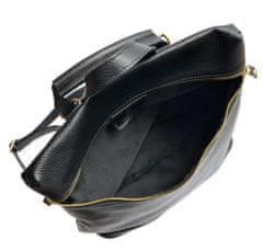 Note Ženski usnjeni nahrbtnik, črne barve, sprednji in notranji žep z zadrgo za manjše predmete, notranji žep, zadrga, nastavljivi pasovi, 2 zanki za pisala.