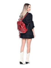 Opomba Ženski usnjeni nahrbtnik z zaponko, vrvico, nastavljivimi naramnicami, notranjim žepom na zadrgo in dvema prostima žepoma za manjše predmete.