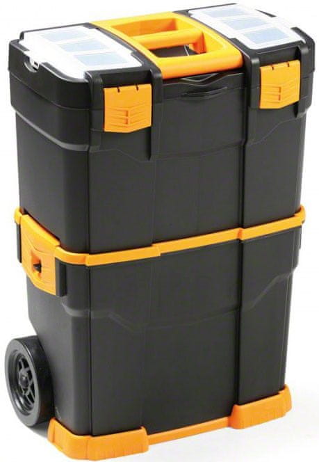 Prostoren plastičen kovček za orodje z dimenzijami 460 × 280 × 665 mm z dvema snemljivima predeloma, je idealen n za shranjevanje električnega in ročnega orodja. Celoten opis