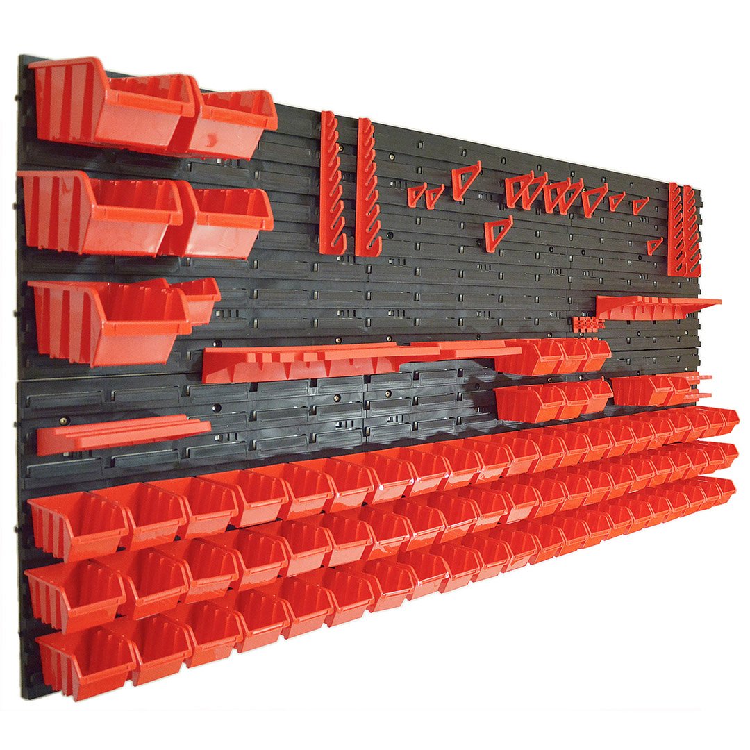 Stenski organizator OrganizeSuper je idealen za organiziranje ročnega orodja, kot so izvijači, kladiva, klešče in majhnih dodatkov, kot so matice, navoji, vijaki, žeblji in drugo.Polica z držali za orodje in škatlami za zlaganje je pritrjena na steno. Škatle za zlaganje so izdelane iz plastike, odporne na udarce in UV-žarke, se lahko pritrdijo, zložijo, lahko zložijo eno na drugo, ko so prazne in imajo predalček za nalepke. Nosilci za škatle se lahko odstranijo posamezno, možna je razporeditev škatel in držal po meri. Nosilec orodja za vsa orodja od kladiv do klešč, od izvijačev do imbus ključev, od brusilcev do svedrov.