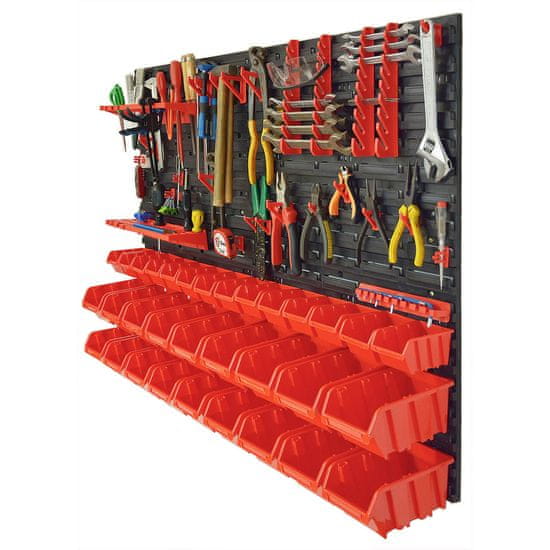 Stenski organizator PRO je idealen za organiziranje ročnega orodja, kot so izvijači, kladiva, klešče in majhnih pripomočkov, kot so matice, navoji, vijaki, žeblji in drugo.