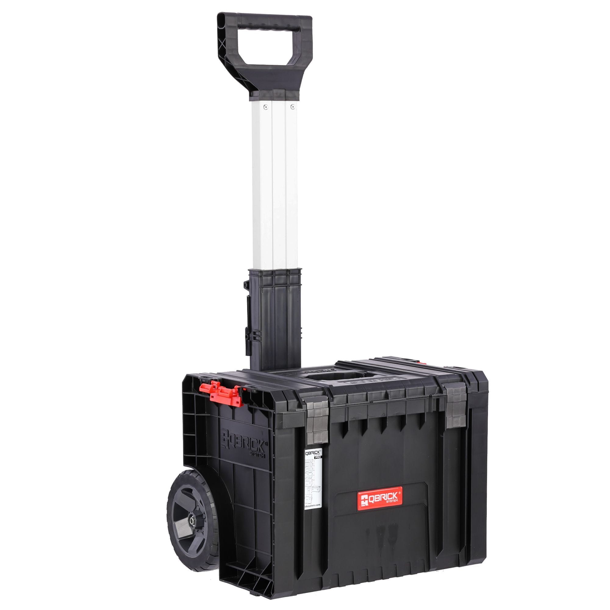 Aluminijast teleskopski ročaj vam omogoča priročno prenašanje škatle, tako da lahko preprosto prenašate orodje na daljše razdalje. Ročaj je nastavljiv, kar omogoča prilagajanje individualnim potrebam uporabnika, izdelan iz lahkega in trpežnega aluminija pa zagotavlja zanesljivost in udobje med transportom škatle.