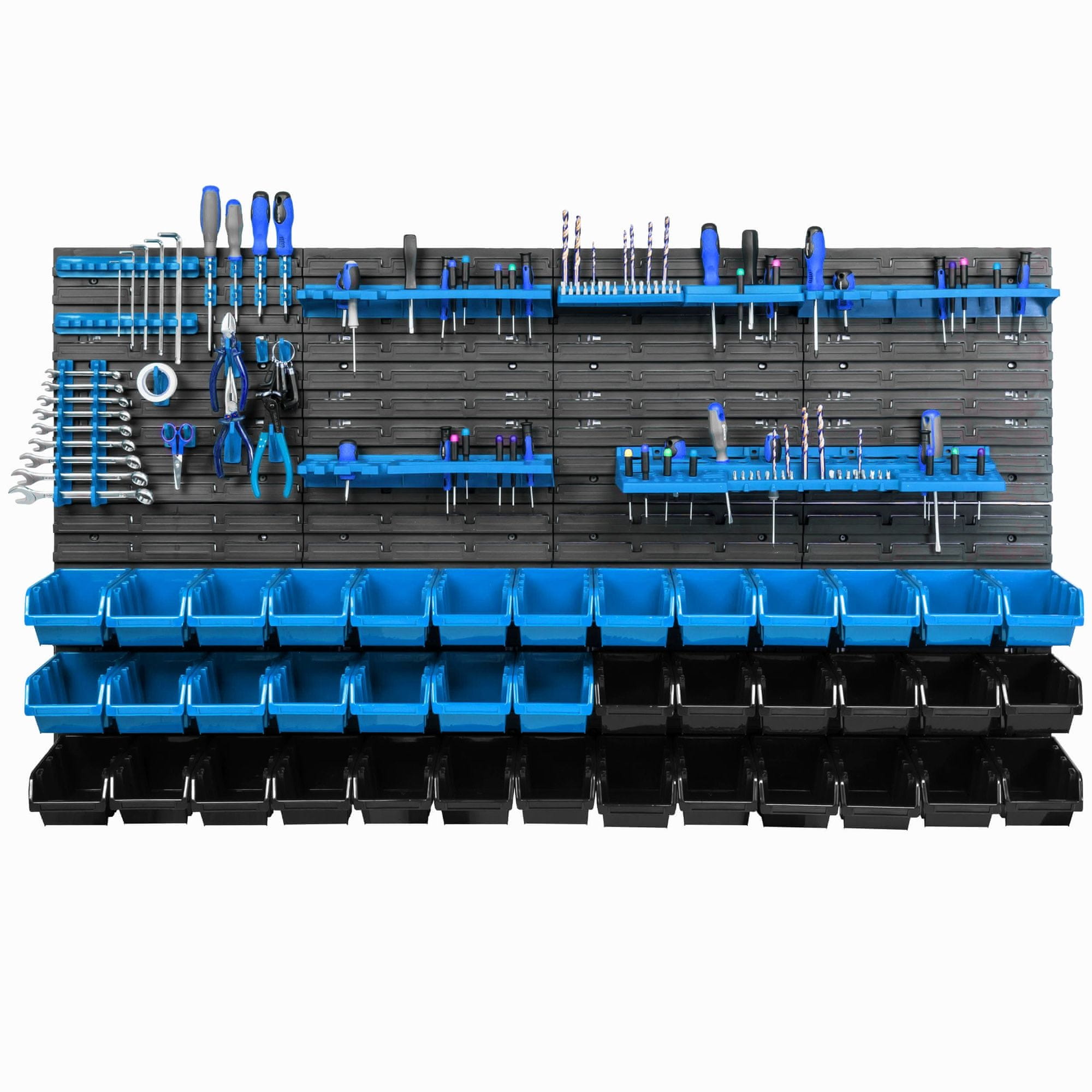 botle Delavniški panel za orodja 156 x 78 cm z 39 kos Škatla viseče Modra in Črna škatle plastika