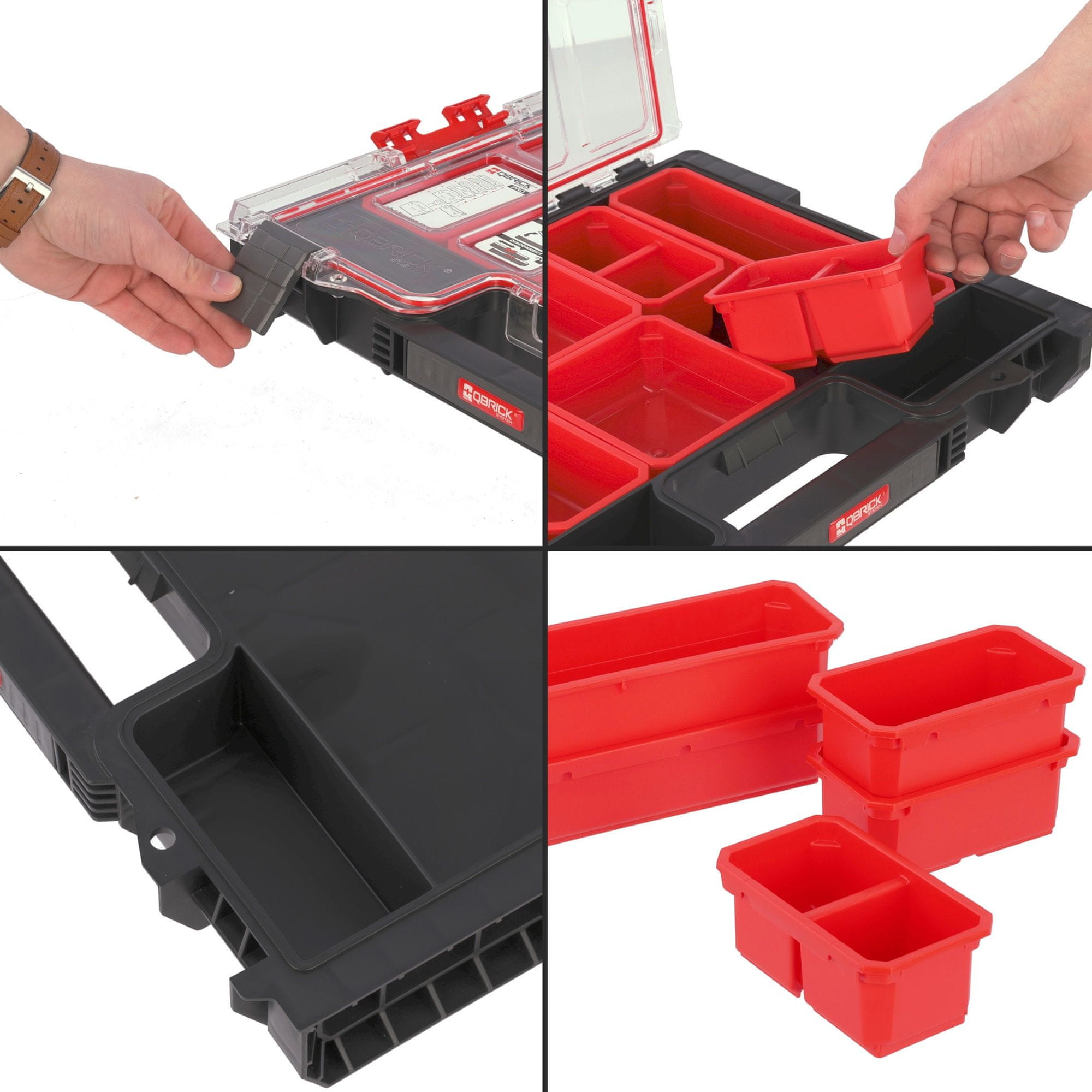 Modularna zasnova serije Pro zagotavlja enostaven transport in shranjevanje zabojev ter možnost dodatne konfiguracije. Škatle, kovčki in organizatorji sistema Pro se med seboj kombinirajo v poljubni konfiguraciji.