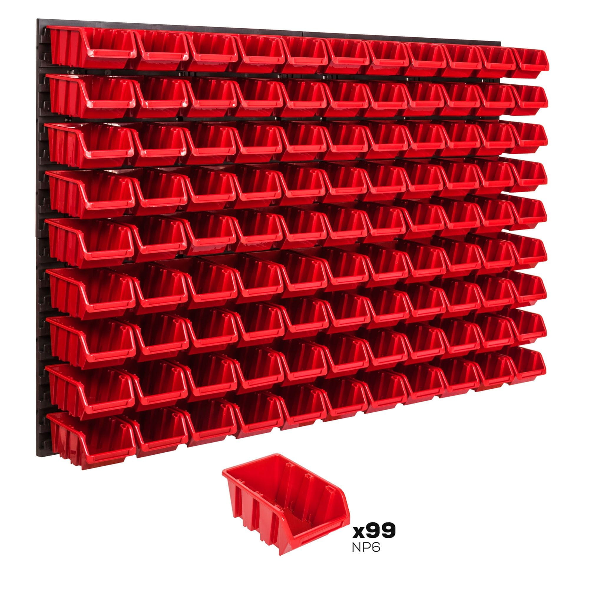 Stenska plošča sistema za shranjevanje 115 × 78 cm z 99 kos Škatla viseče Rdeča Zložljive škatle