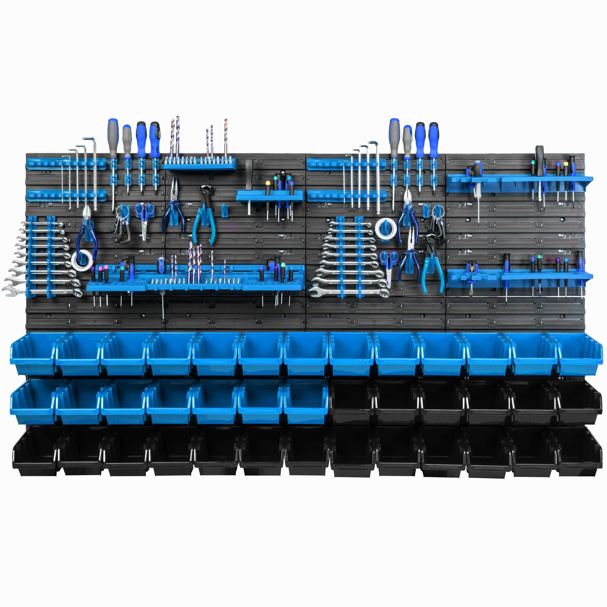 Stenska plošča za orodje 156 × 78 cm z 39 kos Škatla viseče Modra in Črna škatle plastika