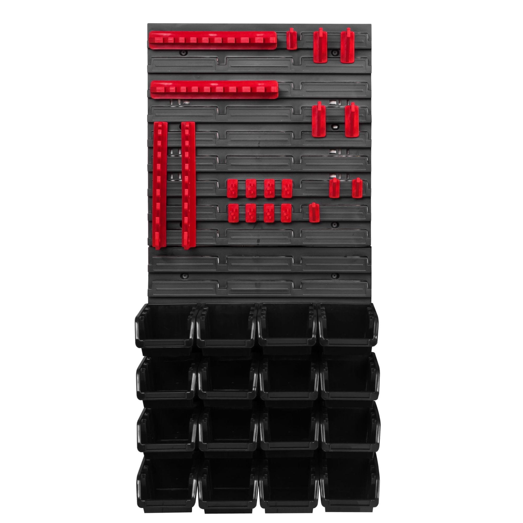 botle Stenska plošča za orodje 39 x 78 cm z 16 kos Škatla viseče Črna škatle s kompletom držal plastika