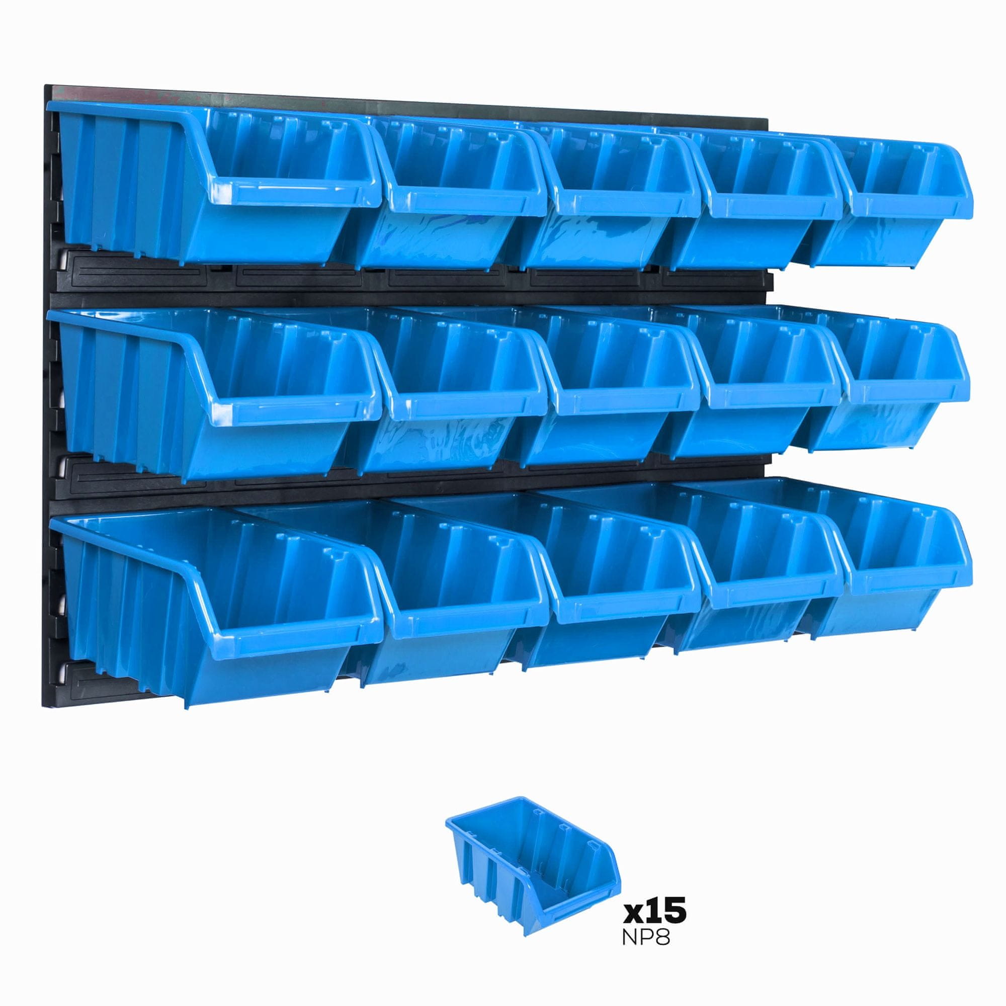 botle Stenska plošča za orodje 58 x 39 cm z 15 kos Škatla viseče Modra škatle Sistem za shranjevanje