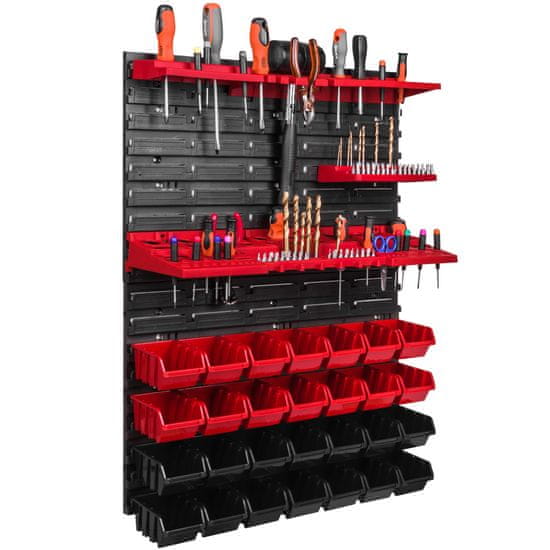 Stenska plošča za orodje 58 × 78 cm z 28 kos Škatla viseče Rdeča in Črna škatle plastika