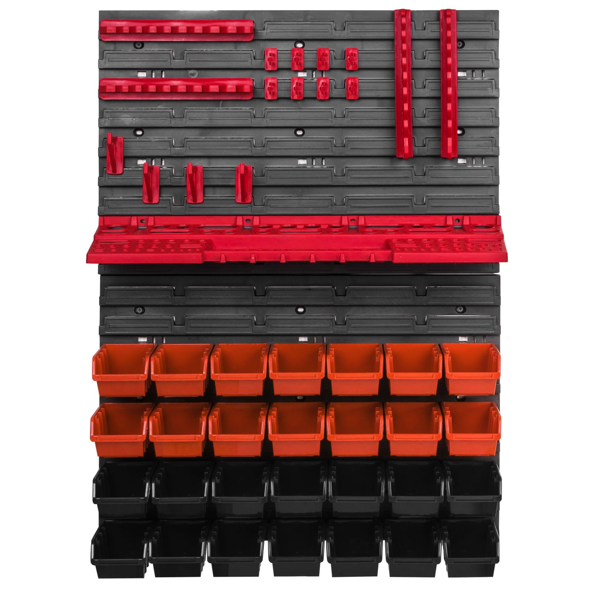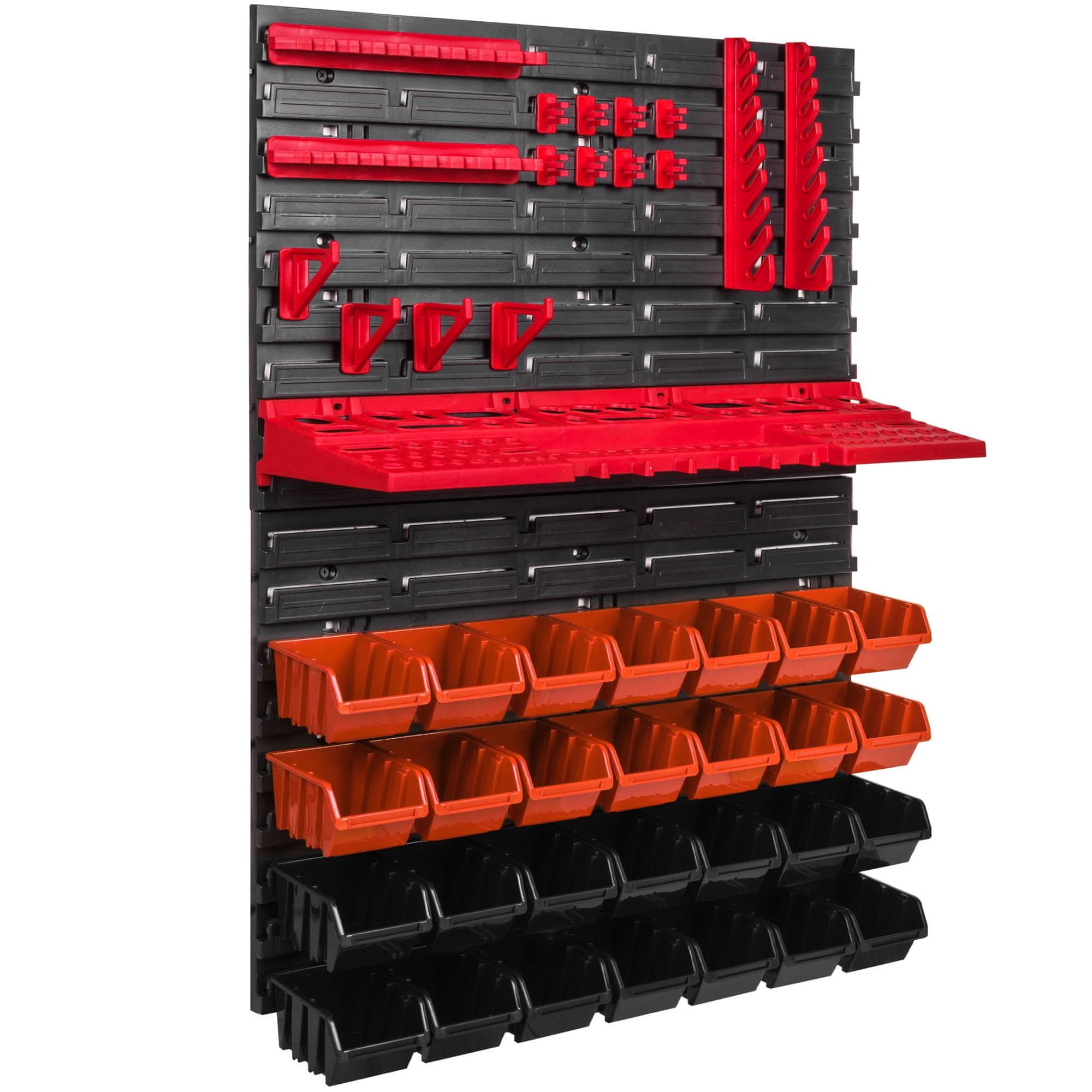 Stenska plošča za orodje 58 × 78 cm z 28 kos Škatla viseče Oranžna in Črna škatle plastika