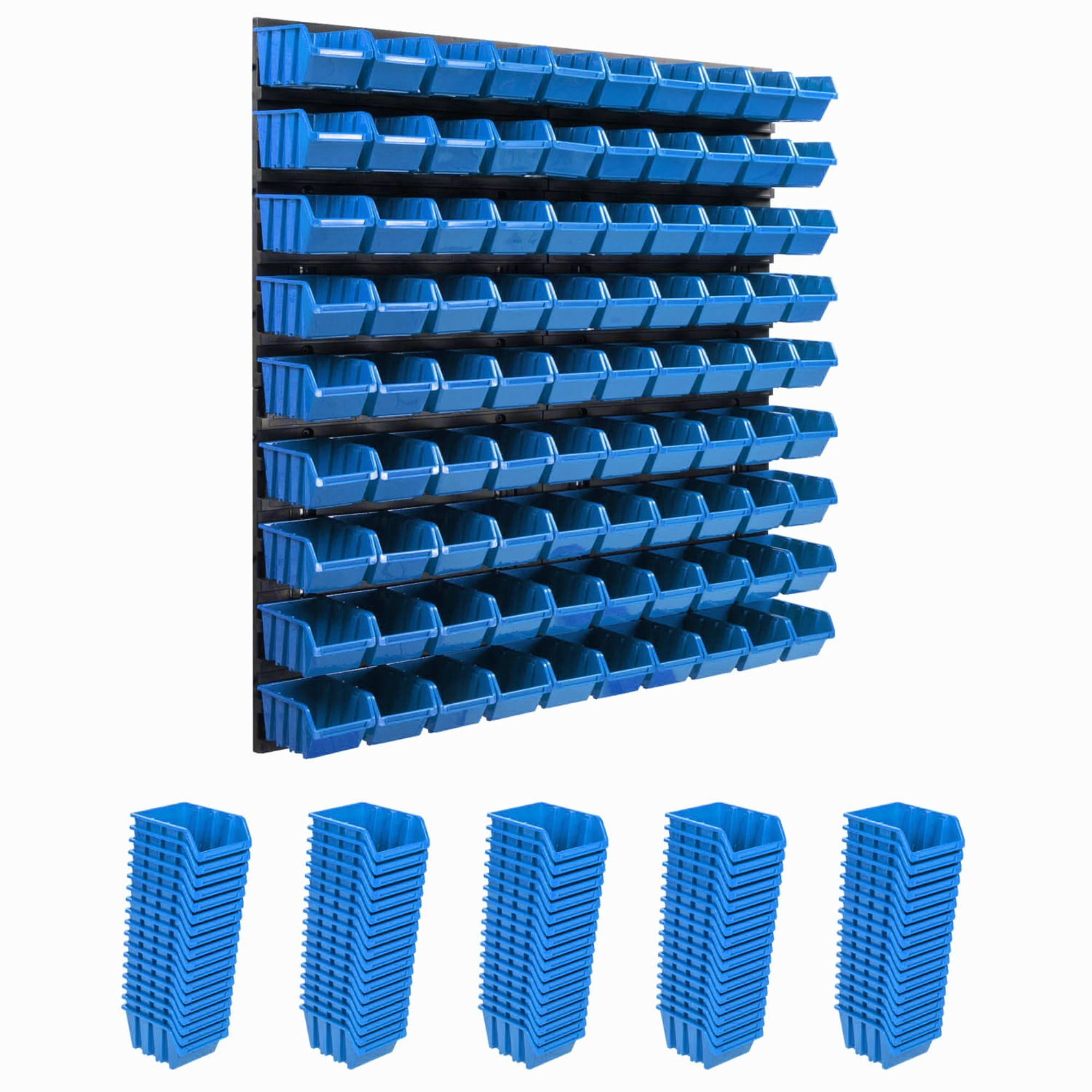 botle Stenska plošča za orodje 77 x 78 cm z 90 kos Škatla viseče Modra škatle Sistem za shranjevanje