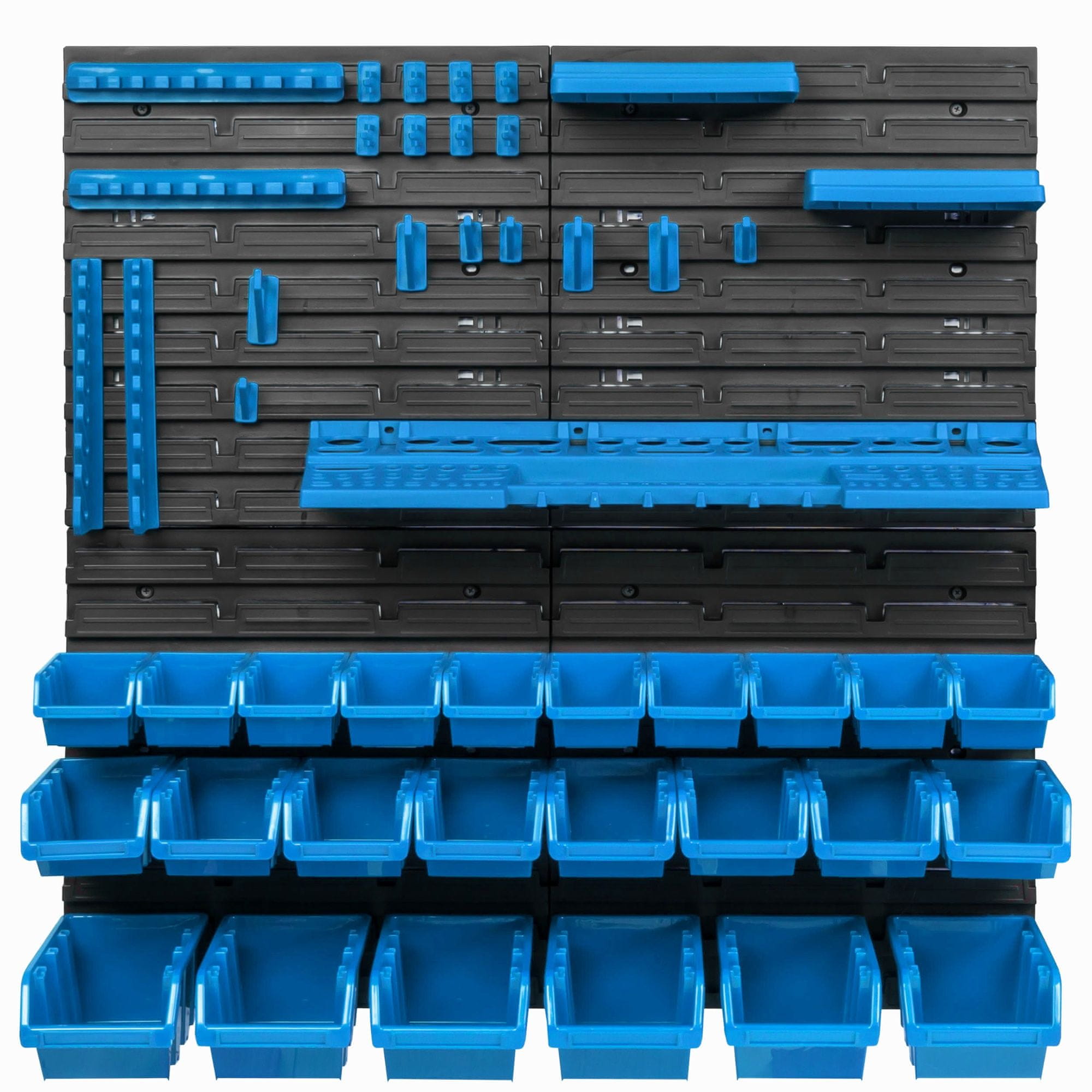 botle Stenska plošča za orodje 77 x 78 cm z 24 kos Škatla viseče Modra škatle s kompletom držal plastika