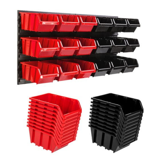 Stenska plošča za orodje 77 × 39 cm z 18 kos Škatla viseče Rdeča in Črna škatle plastika